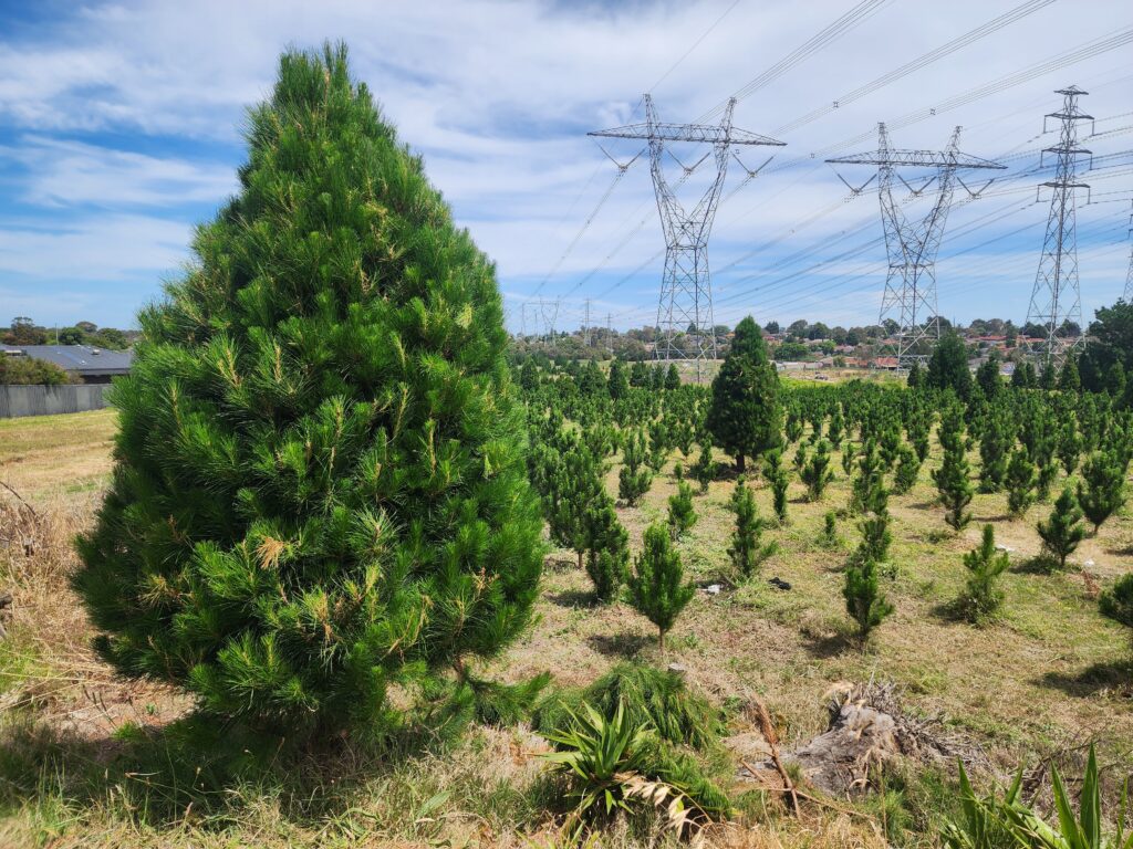 by visiting our christmas tree farm you are able to choose and cut a fresh tree. the trees we grow are pinus radiata. this type of tree is best suited to the Victorian and and indeed the Australian climate. it takes a minimum of 4 years to grow a christmas tree.